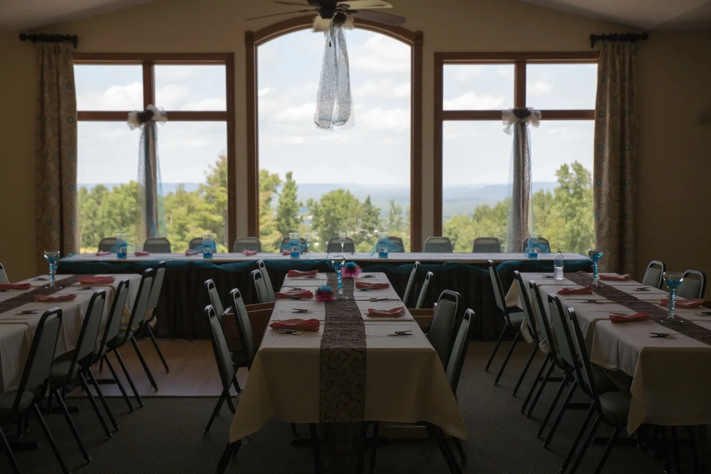 A non refundable Deposit Rental Fee of $500 is due upon the booking of your event to reserve your date. Room Rental fee includes the use of the facility up to 8 hours, use of Bride and Grooms suites and 2 Golf Carts for taking pictures on the course. Bar and Waitstaff service included if minimum food and beverage requirements are met. Room Rental also includes the Set-Up services (indoor only). Table rearrangements during and after your event is your responsibility along with cleaning of tables, trash and linens.